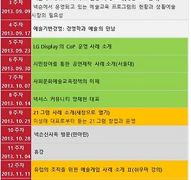 교육과정개발사업/[한예종] 기업과 문화예술 Ⅲ 썸네일형 리스트형 2013년도 '기업과 문화예술' 교과목 소개 한국예술종합학교 2학기 예술경영 전문사 과정 2013. 9. ~ 2013. 12. ■ '기업과 문화예술' 교과목 소개 이 과정은 문화예술을 통한 창조경영 인력을 양성하기 위한 교육과정 개발 및 지원사업의 일환으로써, 문화예술을 통한 창조경영에 참여하고자 하는 문화예술단체의 요구에 부응하는 인력 양성을 목표로 하며, 문화예술인력 육성 및 정책지원 방안을 연구하여 기업이 문화예술에 어떻게 도움을 줄 것인지 고민하는 동시에 문화예술이 기업에 어떤 도움을 줄 수 있을지 모색하는 상호적 관계 형성을 탐구해 보는 수업으로, 기업과 문화예술의 바람직한 주고받음에 대한 이해 및 발전방향을 모색하기 위하여 한국예술종합학교 예술경영 전문사 과정에 편성되었습니다. 수업은 해외에서 이루어지는 해당 분야 연구의 동향과 관련 사.. 더보기 이전 1 2 3 4 ··· 12 다음