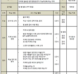 교육과정개발사업 썸네일형 리스트형 [13주차] 지역 & 창조경영 1. 학습목표 - 지역과 창조경영의 연결점에 대하여 알아보도록 한다. - 지역에 필요한 창조경영, 창조가 가능하도록 하는 지역에 대하여 알아보도록 한다. 2. 학습성과 창조적 지역과 창조적인 사람들에 대한 개념, 사례들을 이해하여 학생들 스스로가 창조경영에 대한 정의를 내릴 수 있는 시간을 가져본다. 3. 주요 학습 내용 도입 보조자료 1) 출석 확인 2) 지난 시간의 간략한 리뷰 및 질의 응답 시간 3) 팀 발표 준비 사항 확인 전개 보조자료 1) 지역 & 창조경영 2) 발표 학생들의 사례 선정 이유에 대해서 충분히 설명하도록 유도한다. 3) 지역의 정의부터 시작하여 도시와 지역을 구분한다. 4) 소피아 앙티폴리스의 사례를 소개한다. 주식회사 장성군 종결 1) 요약 및 향후 진행 공고 - 어떤 이들이 .. 더보기 이전 1 ··· 70 71 72 73 74 75 76 ··· 101 다음