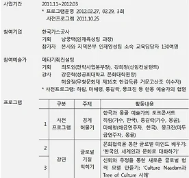 기업 컨설팅 및 실행사업 썸네일형 리스트형 2. 글로벌 역량강화 - 글로벌 노마드 (1) 한국가스공사 Global Normad 글로벌 노마드 Background 한국가스공사(KOGAS)는 글로벌 에너지 기업으로, 중앙 아시아를 중심으로 해외 네트워크 사업 참여를 확대하고 해외사업을 핵심사업으로 선정하는 등 글로벌 기업으로의 변화와 혁신이 요구되고 있었다. 이에 조직원들의 국제협력 업무 역량이 중요시되어 어학 교육을 강화해왔다. 하지만 언어 이외에도 문화협력적 관계를 구축하기 위해서는 유연한 사고와 열린 태도, 즉 ‘글로벌 마인드’를 갖추는 것이 필수적이었다. 글로벌노마드를 기획한 메타기획 컨설팅은 2006년부터 몽골과의 교류사업을 추진해오고 있었으며, 2008년부터 몽골의 국민적 행사인 나담축제 기간에 문화교류 행사인 문화나단축제를 운영해오고 있었다. 이에 한국가스공사, 아르꼼, 메타.. 더보기 이전 1 ··· 27 28 29 30 31 32 33 다음
